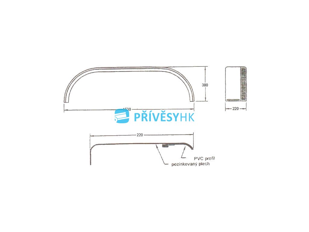 Blatník tandemový kombi š220 mm/d1530 mm s gumovým lemem (2.jakost)