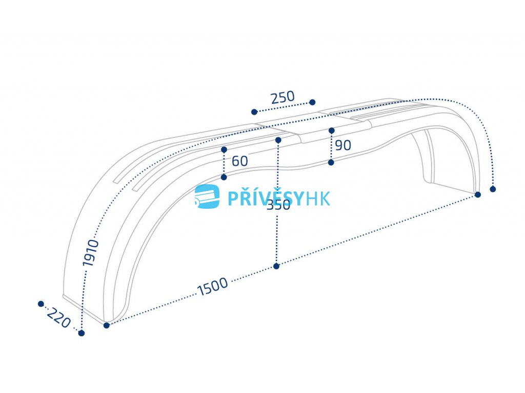 Blatník je dodáván nevrtaný. Je symetrický podle příčné osy, takže je možné ho použít na pravou i levou stranu přívěsu. Horní rovná plocha blatníku usnadňuje usazení např. těsně pod podlahu přívěsu. Díky velmi pěknému povrchu je blatník vhodný i pro montáž na přívěsy s koly vedle ložné plochy, kde vkusně dotvoří celkový vzhled přívěsu.