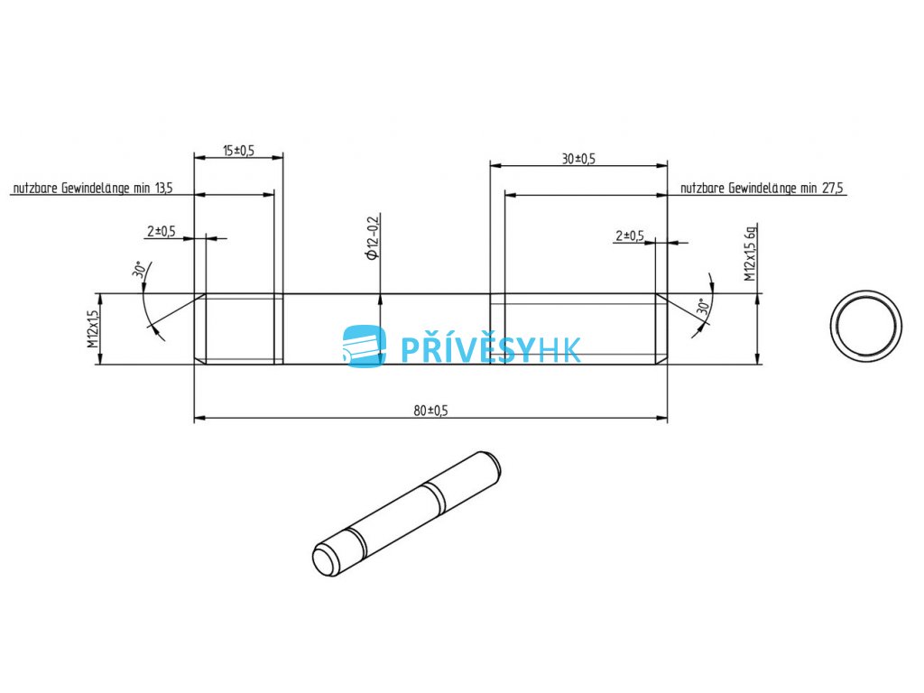 Čep závitový (svorník - šteft) do bubnu KNOTT 200x50 10" FITZEL