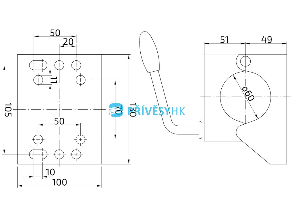 Držák opěrného kolečka 60 mm KLE/60 rozevírací