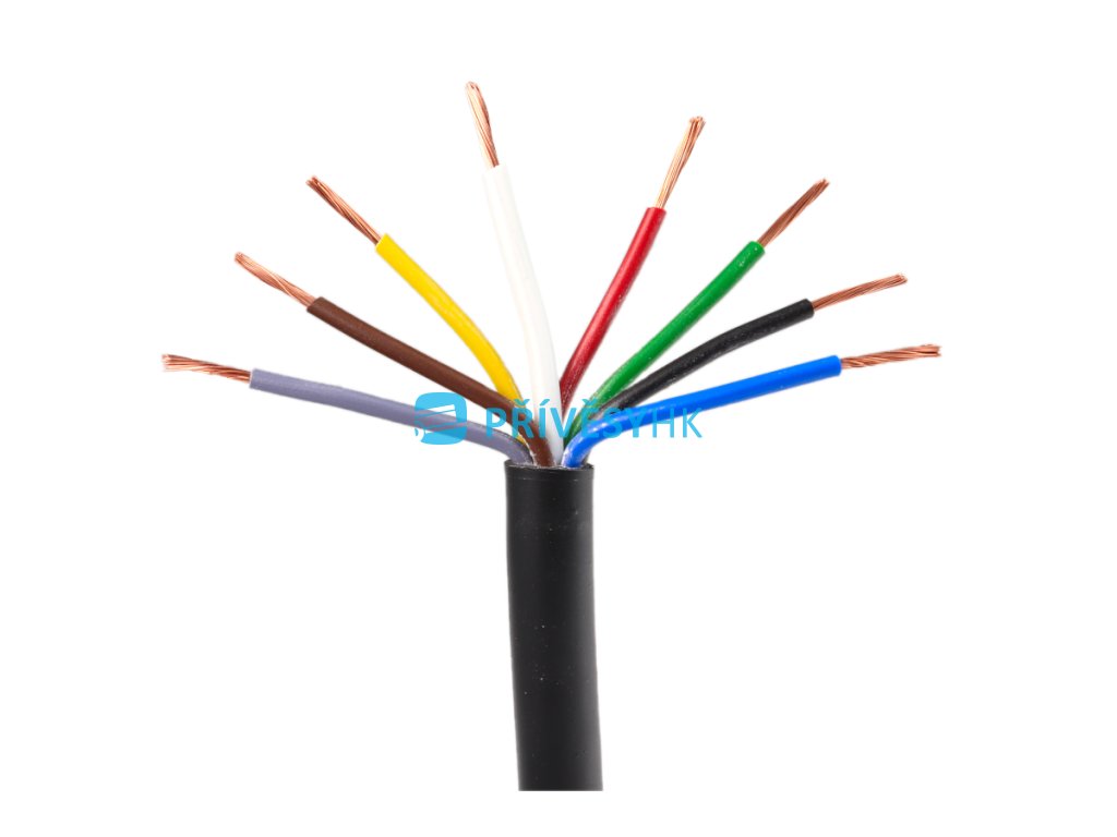 100 metrové balení osmižilového kabelu se zesíleným vodičem pro kostru pro elektroinstalace přívěsů. Průřez jednotlivých sedmi vodičů (lanek) 1 mm2, průřez osmého vodiče pro kostru 1,5 mm2. Jednotlivé vodiče kabelu jsou barevně rozlišené v barvách bílá, žlutá, zelená, červená, černá, hnědá, modrá, šedá.