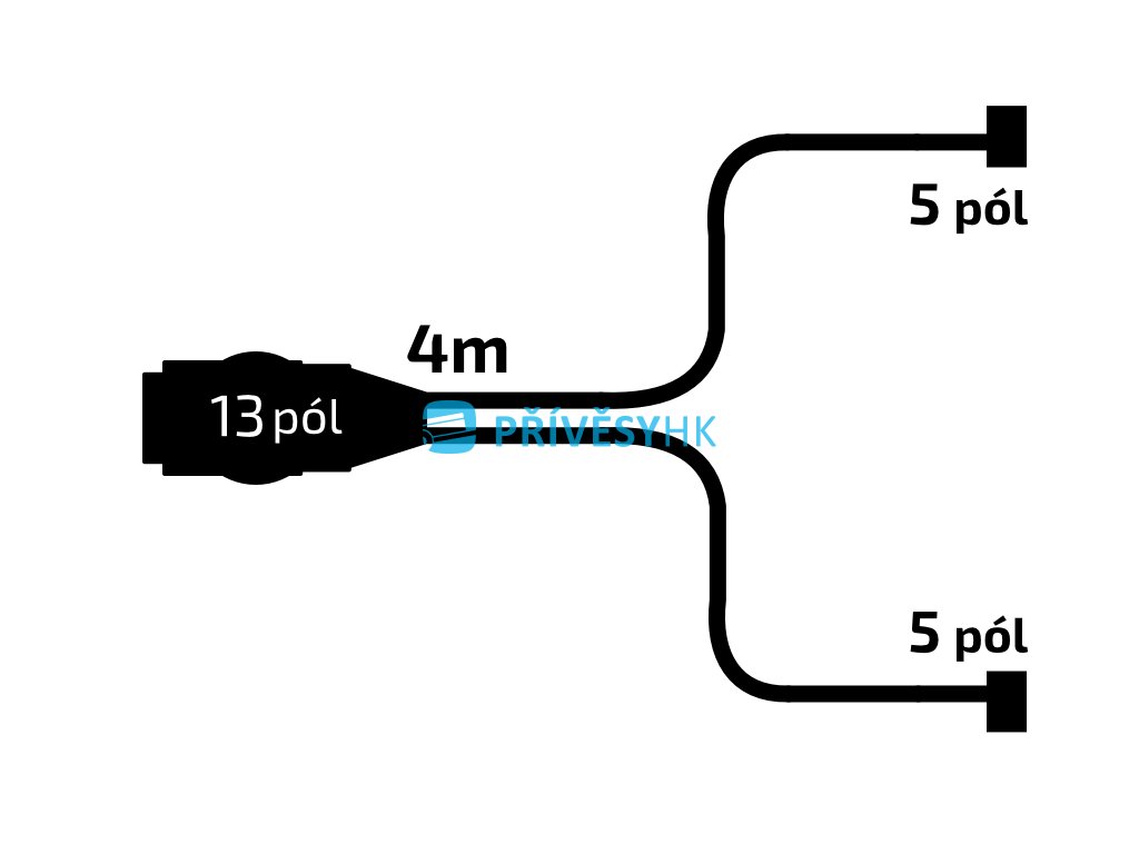 Vysoce kvalitní kabeláž Fristom. Provedení umožňuje napojení dvou svítilen na pětipinové bajonety, a to s následujícími funkcemi: