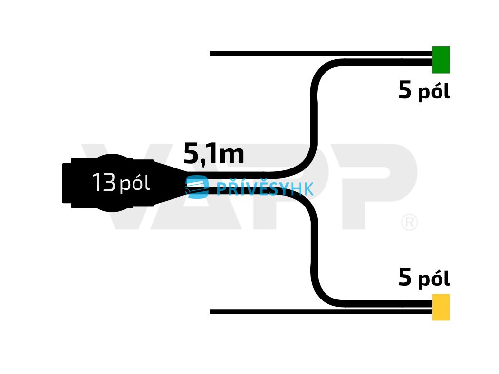 Kabeláž 5,1 m/13-pól. zástrčka, s předními vývody, baj5, Fristom, QS75