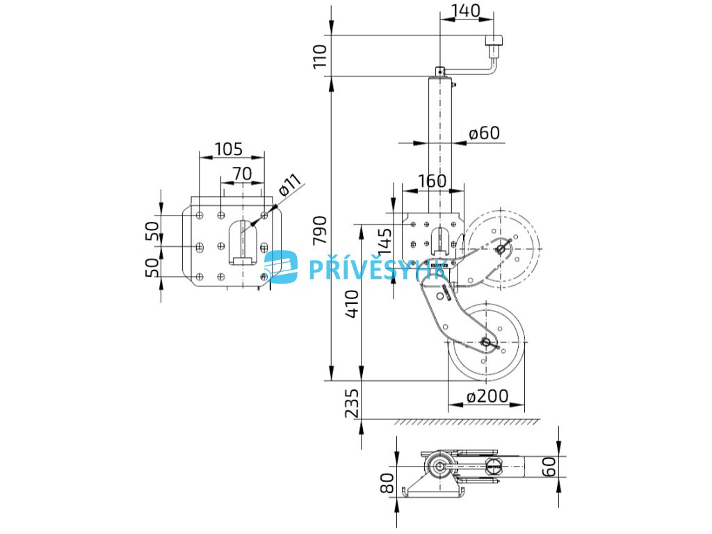 Kolečko opěrné automat. KNOTT ATK60V-B 200x50 500 kg