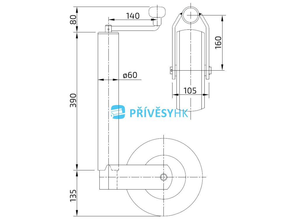 Předimenzováná vidlice kolečka a celkově velmi solidní zpracování předurčije toto opěrné kolečko pro použití na přívěsech s vysokým provozním zatížením.