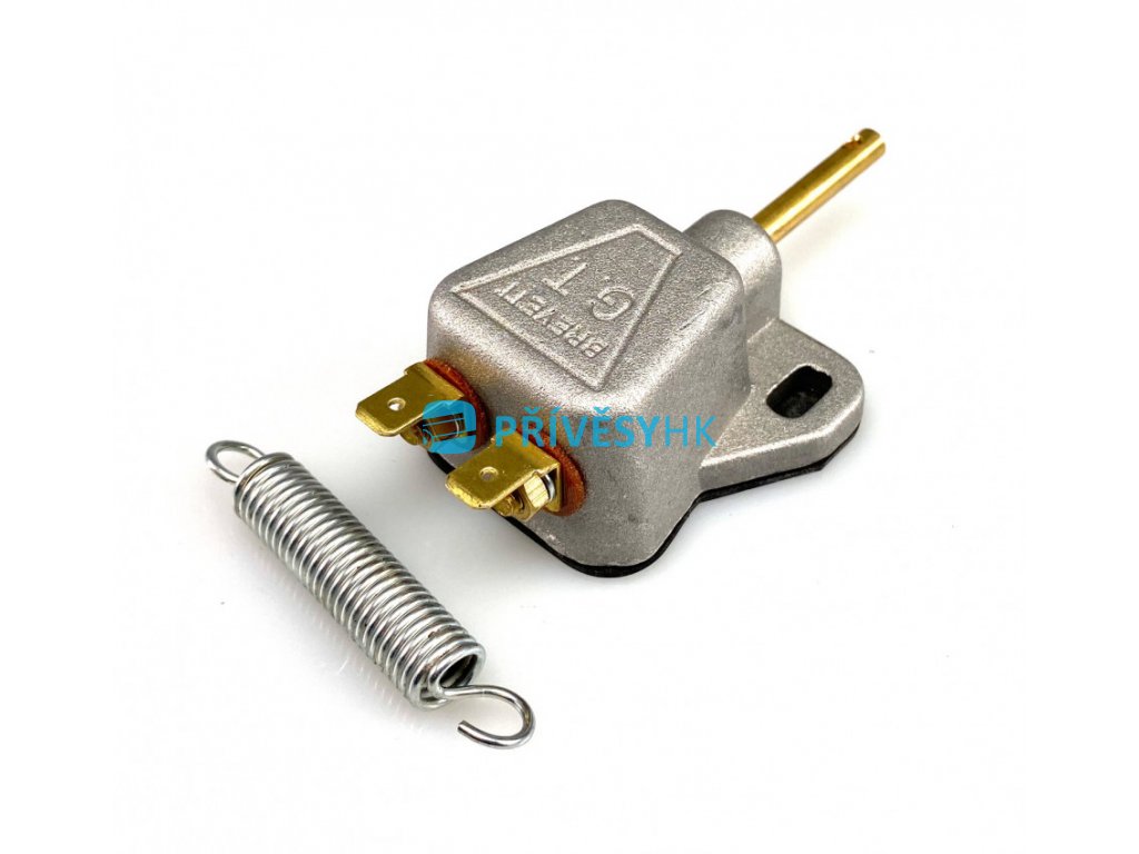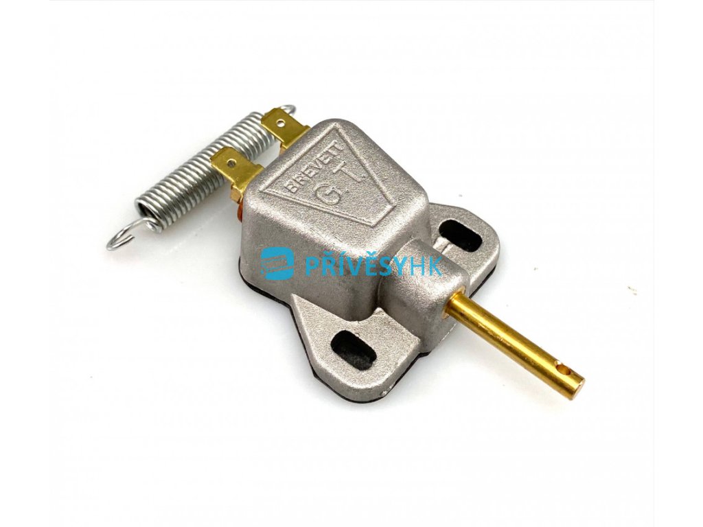 - Aby nedošlo k poškození spínače během provozu, napojuje se ovládací hřídel spínače na tahové lanko korby přívěsu přes přiloženou tažnou pružinu.