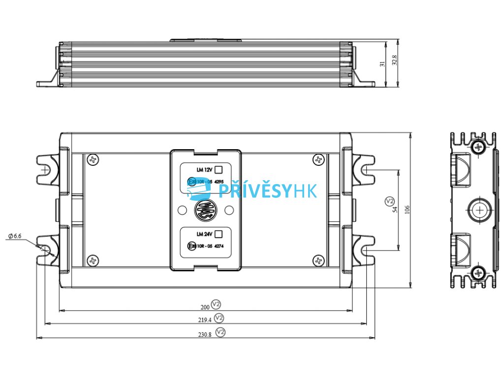 Kontrolní jednotka WAS LM7 ke sdruženým LED svítilnám přívěsu simuluje provoz běžných žárovkových svítilen pro elektroniku tažného automobilu, která kontroluje osvětlení přívěsu a není ještě připravena pro moderní LED osvětlení s nízkým odběrem
