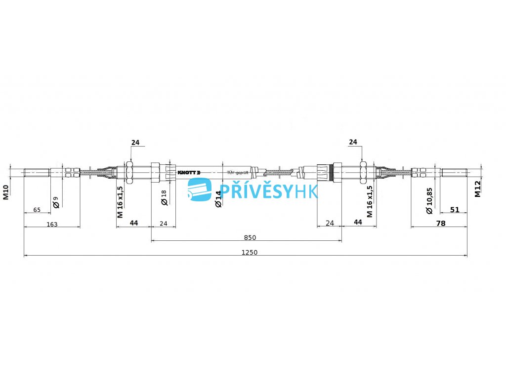 Lanovod brzdový pro KHV KNOTT 850/1250 závit M10-M12