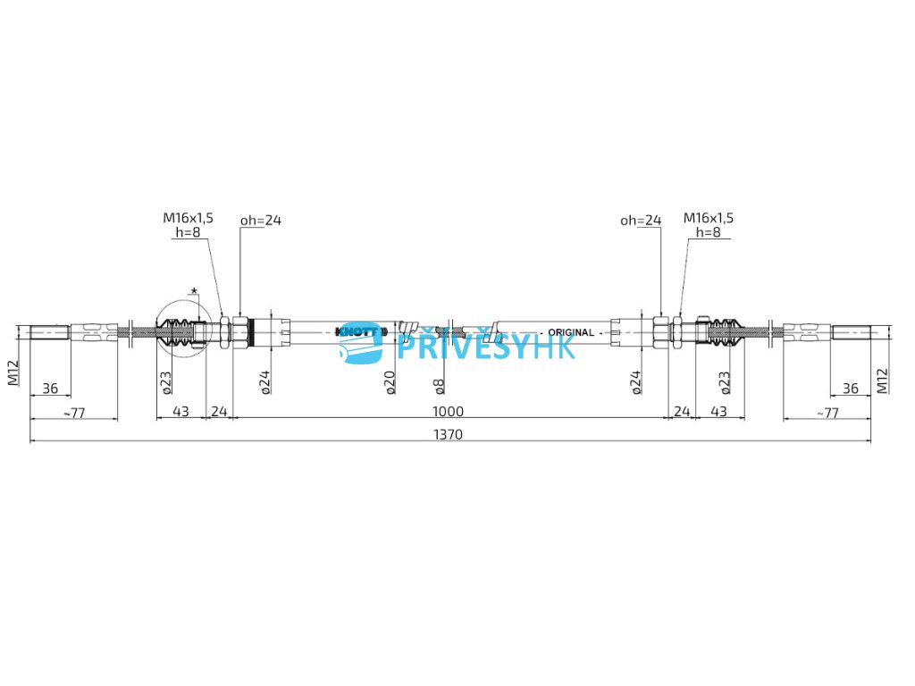 Lanovod brzdový pro KHV KNOTT 1000/1370 závit M12-M12