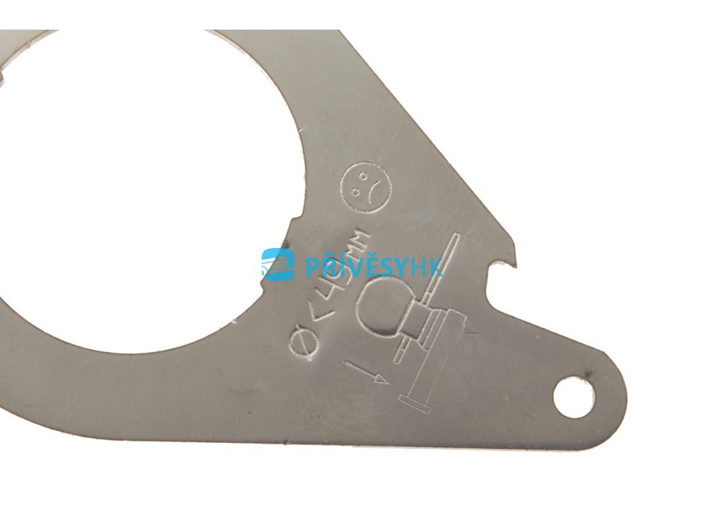 - Ocelová měrka pro rychlé posouzení míry optřebení tažné koule pr. 50 mm.