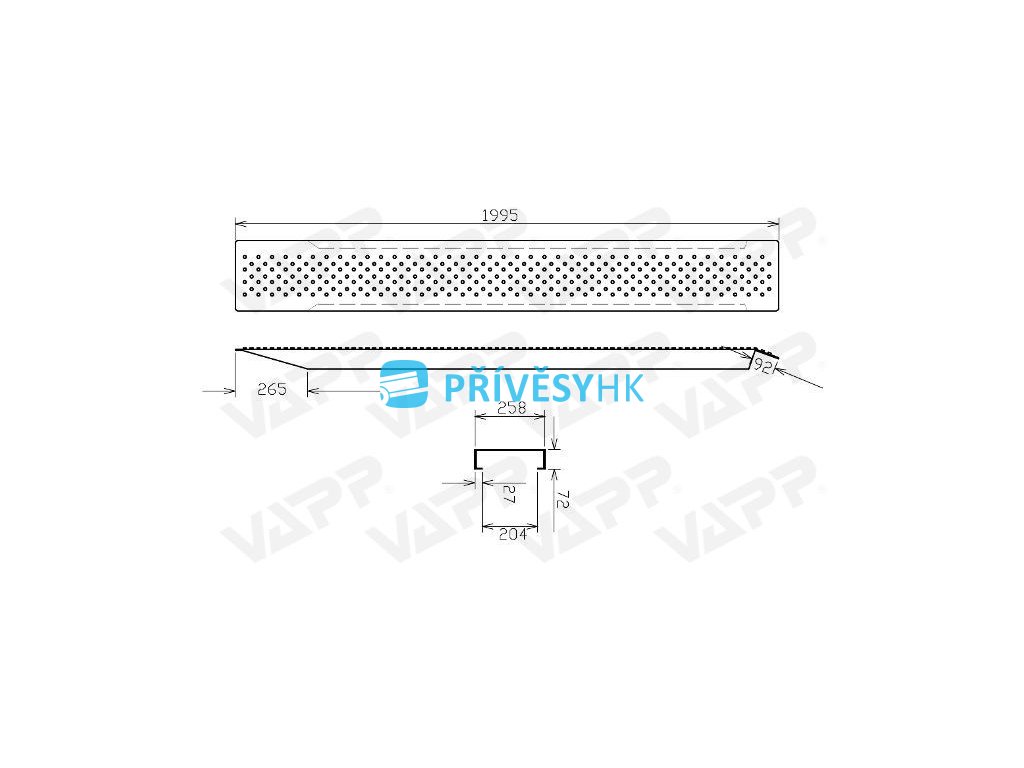 Praktický lehký nájezd s protiskluzovou úpravou. Nájezd je vhodný např. pro zahradní techniku, čtyřkolky, motockyly apod.
