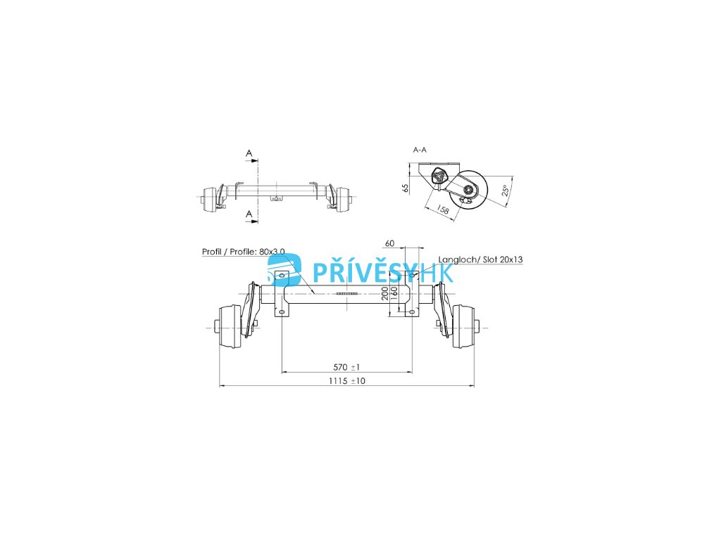 Náprava AL-KO Compact B 850-5 (900 kg) a= 570 mm, c=1115 mm, 1637, 100x4