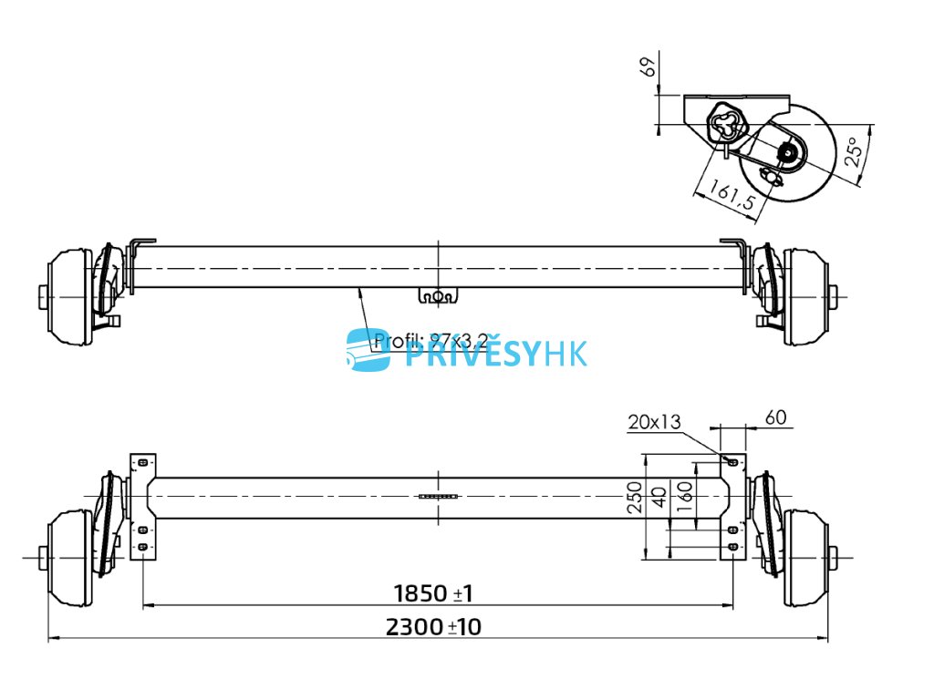 Náprava AL-KO Compact WASSER B 1200-6 (1350 kg) a=1850 mm, c=2300 mm, 2051, 112x5