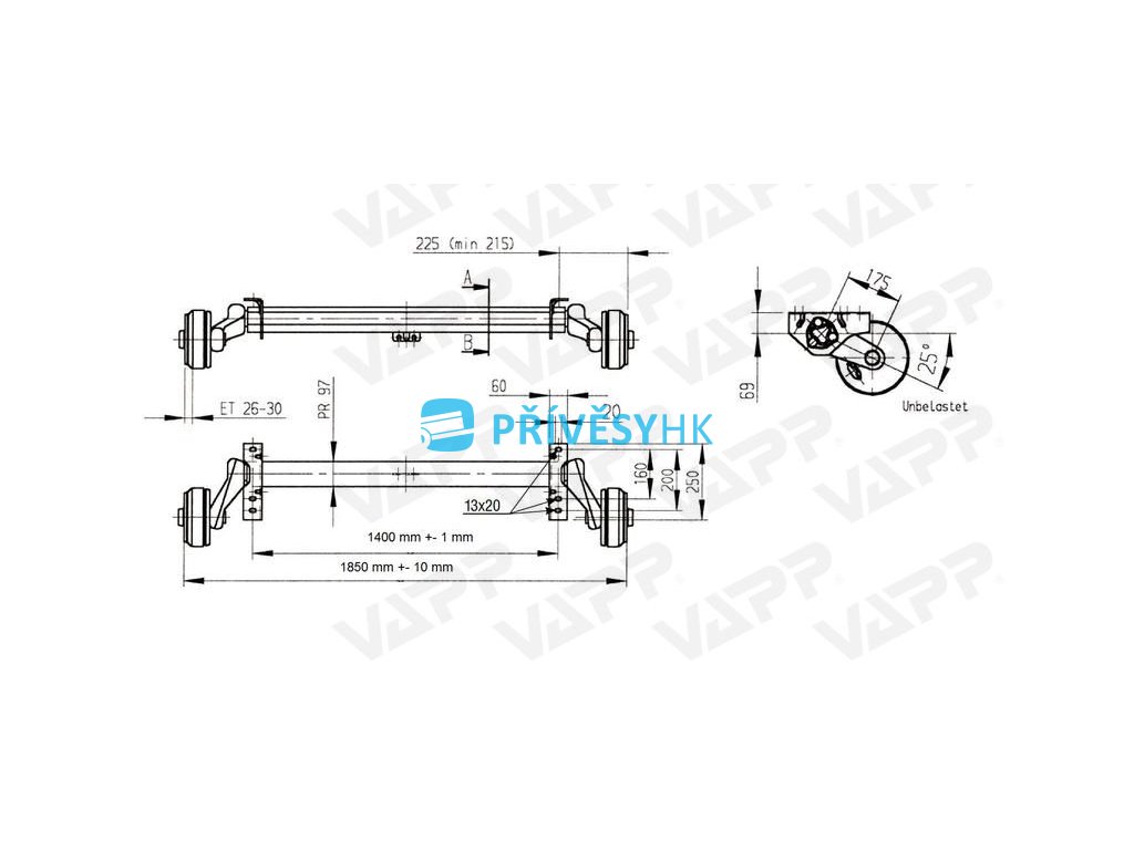 Náprava AL-KO Plus B 1200-6 (1350kg) a=1400 mm, c=1850 mm, 2051, 112x5