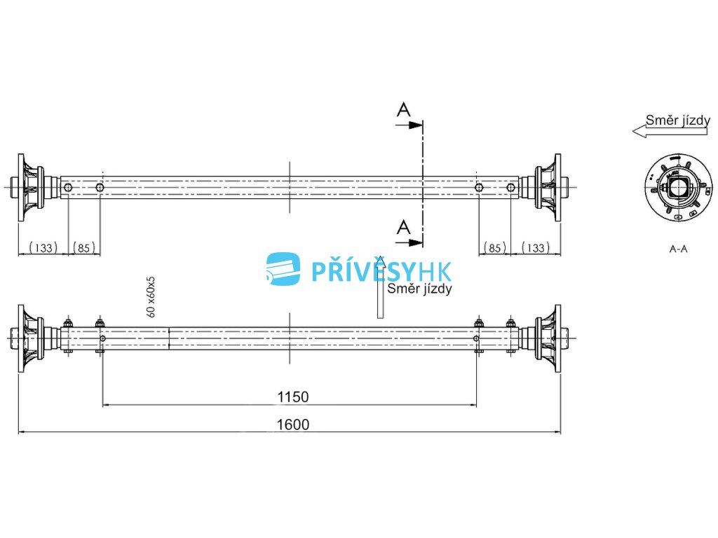Náprava AL-KO Starr Plus LS (1500kg) a=1150 mm, c=1600 mm, 112x5