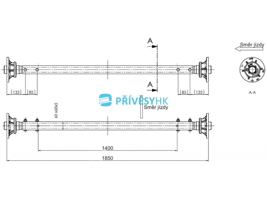 Náprava AL-KO Starr Plus LS (1500kg) a=1400 mm, c=1850 mm, 112x5