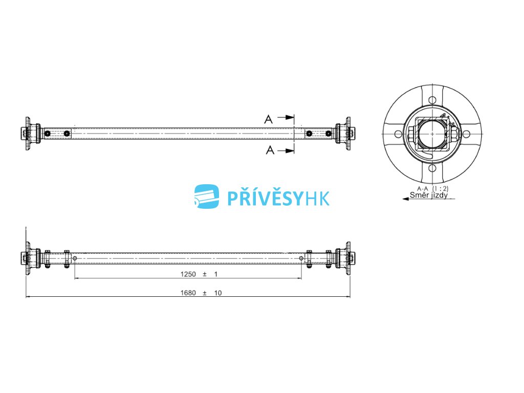 | šířka nápravy v montážních úchytech: | 1250 mm |