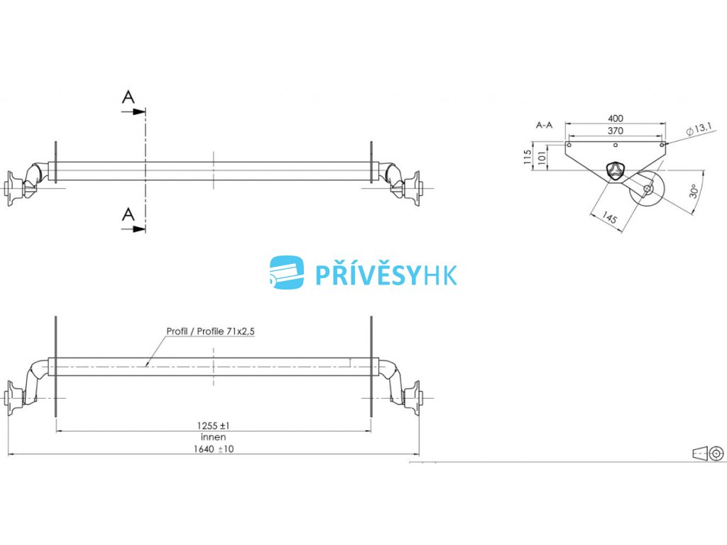 Náprava AL-KO UBR 700-5 (750 kg) a=1255 mm, c=1640 mm, 100x4, patky 115 (Maro)