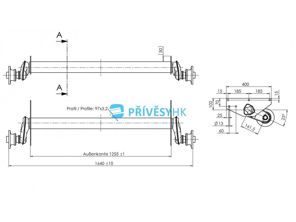 Náprava AL-KO UBR 1200-5 (1300 kg) a=1255mm, c=1640 mm, 112x5, (Maro)