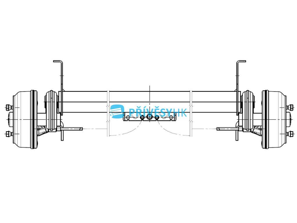 přívěsu lepší stabilitu na vozovce. Náboje jsou osazeny kompaktními bezúdržbovými dvouřadými kuličkovými ložisky s kosoúhlým stykem. Těleso nápravy je žárově pozinkováno. Použité kolové brzdové jednotky jsou vybavené couvací automatikou Backmat. Náprava je dodávána kompletní včetně osazených a seřízených kolových jednotek, včetně brzdových bubnů.