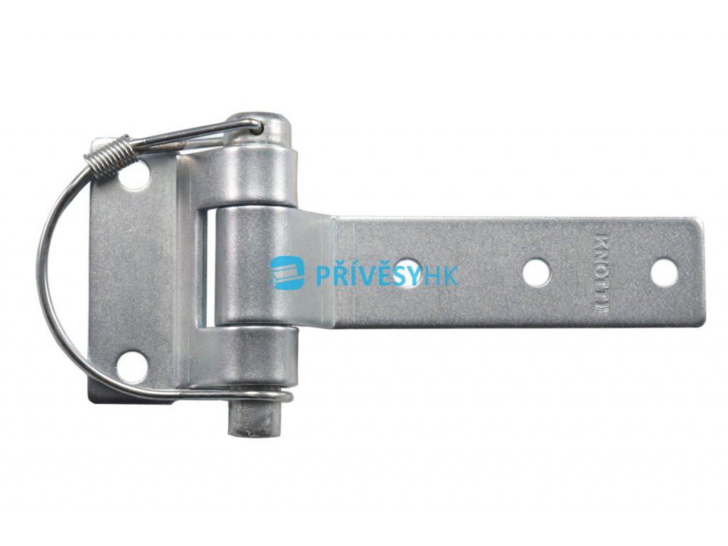 Snadno rozebiratelný kompletní bočnicový pant s čepem zajištěným pružinovou pojistkou, galvanicky zinkovaný.