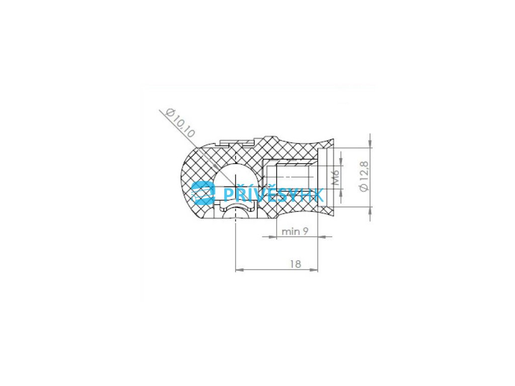 Čep kulového kloubu k plynové vzpěře BM, c=27mm, M6, ocel
