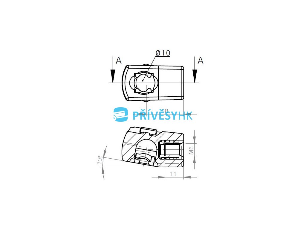 Pouzdro kulového kloubu zkosené k plynové vzpěře BM, c=18mm, pro závit M6, plast