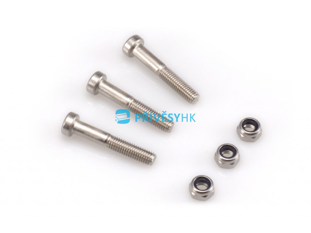 - Sada 3 ks nerezových šroubů s nízkou imbus hlavou a 3 ks samojistných nerezových matic pro uchycení autozásuvky tažného zařízení