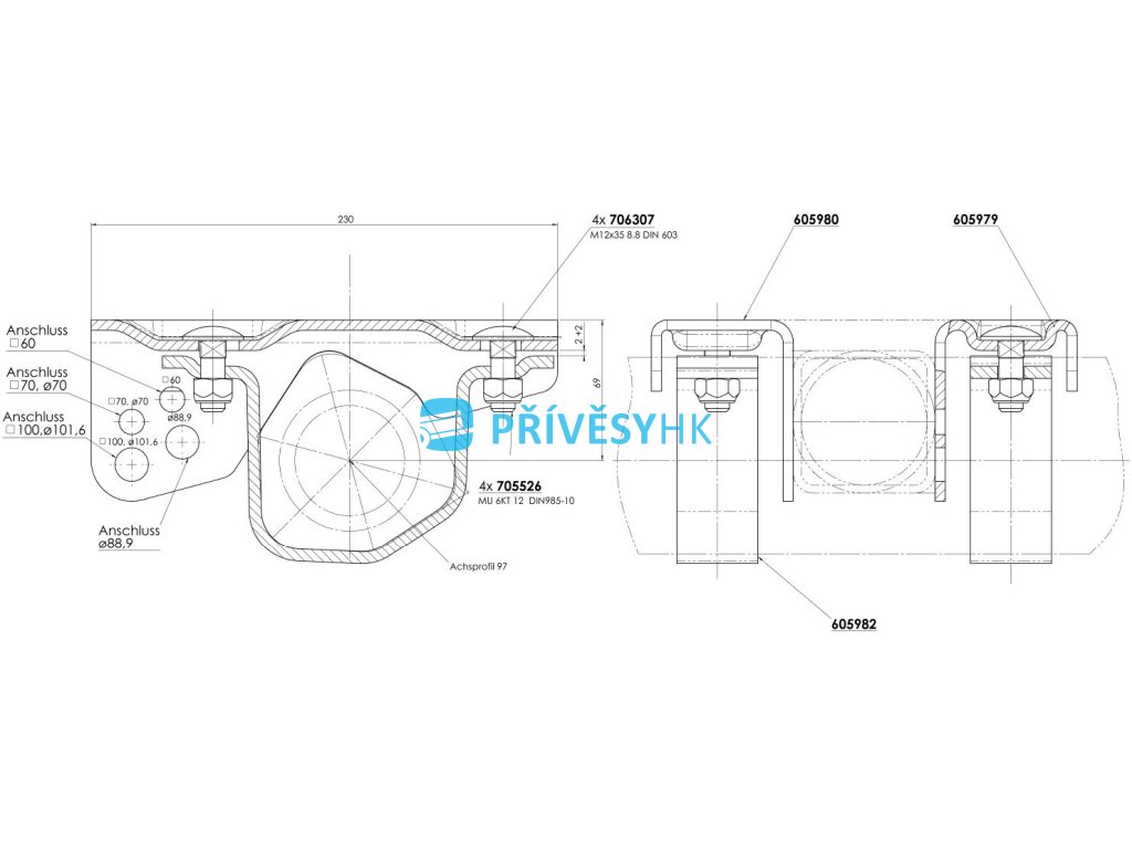 Spojnice AL-KO pro napojení nápravy AL-KO B 1200 na jeklovou či trubkovou oj.