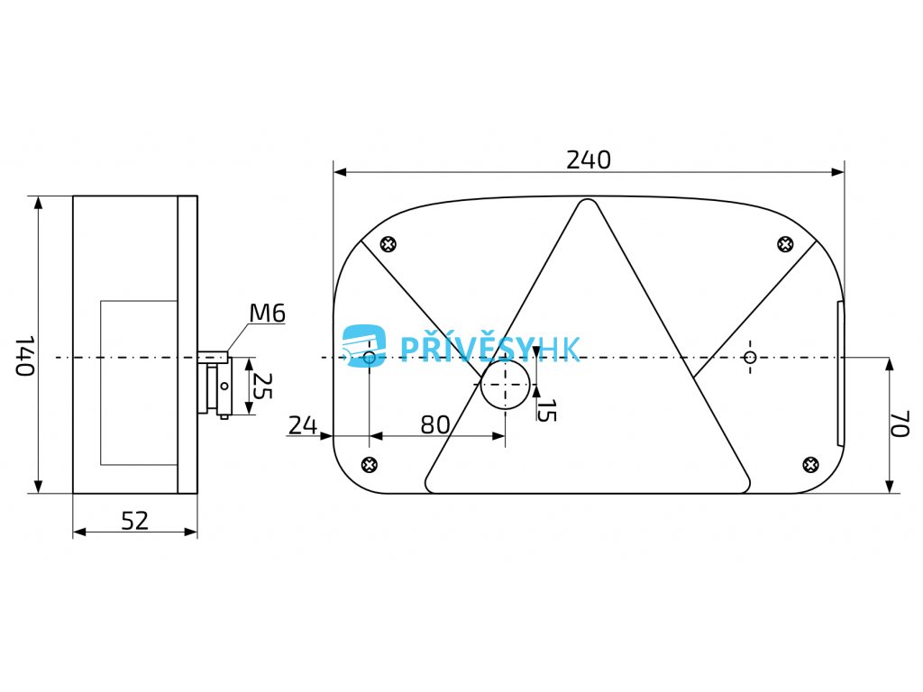 Osazení žárovkami: 1x PY21W, 1x P21W, 1x P21W/5W, 1x R5W (žárovky jsou součástí dodávky)