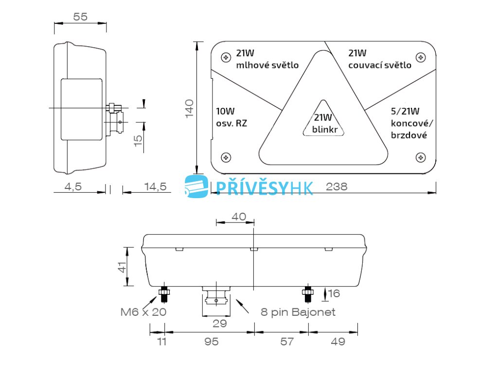 Svítilna Aspöck Multipoint V sdružená, P-BL/BR/KO/CO/ML/RZ, baj8