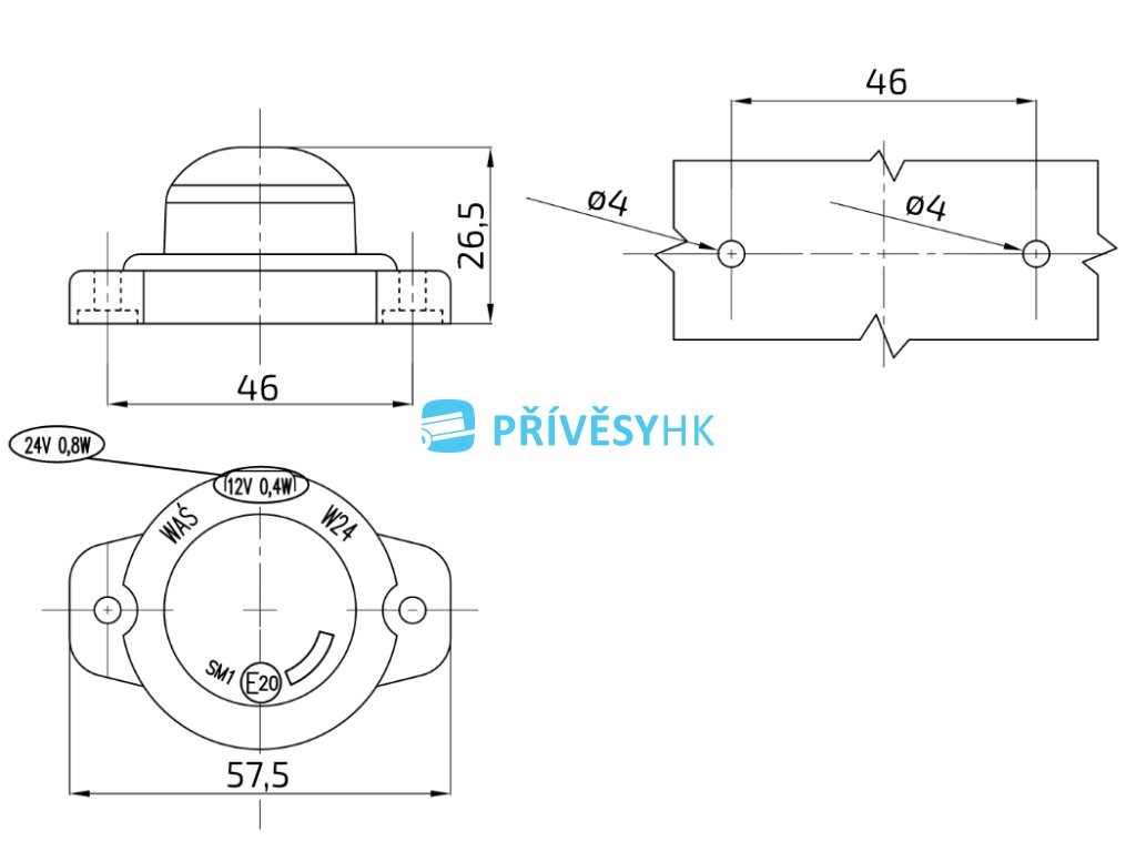 | uchycení svítilny: | 2x otvor 4mm |