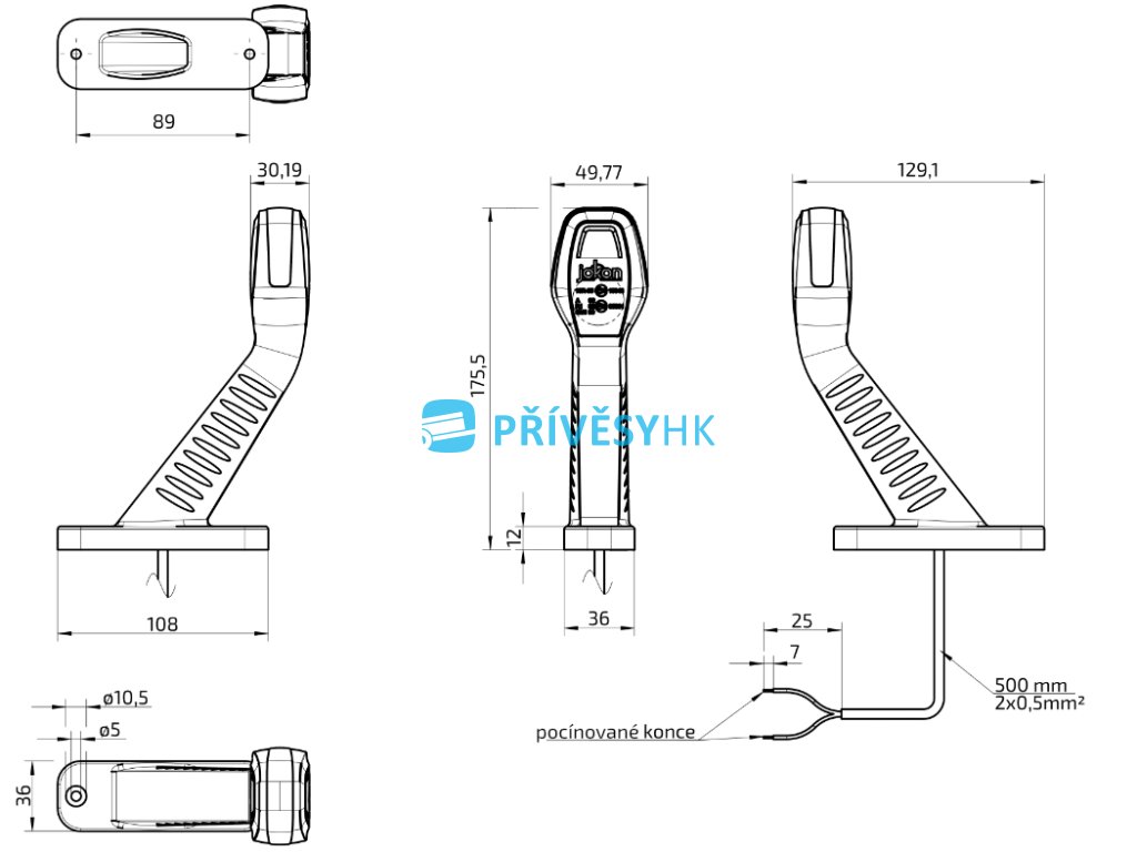 Doplňková obrysová svítilna na držáku v LED provedení s gumovým držákem. Přední, zadní a boční obrysové světlo. Svítilna je v multivoltážním provedení.Doplňkové parametry