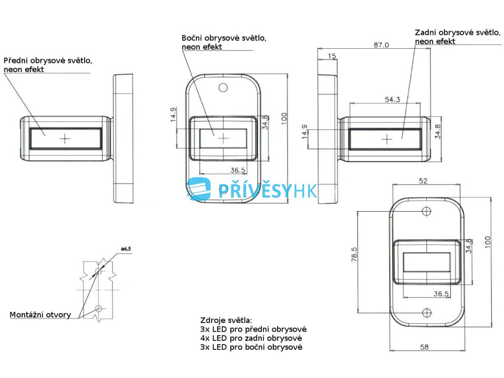 4x LED zadní obrysové
