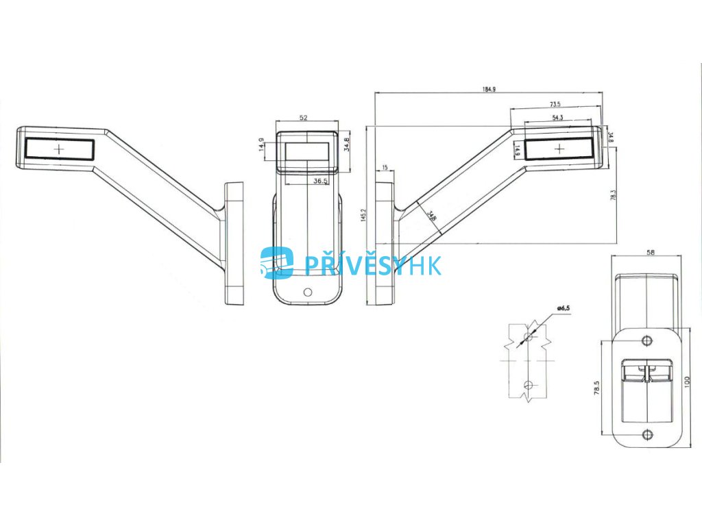 Svítilna doplňková obrysová LED WAS W168.4/1172, 12-24V, levá, neon ef.