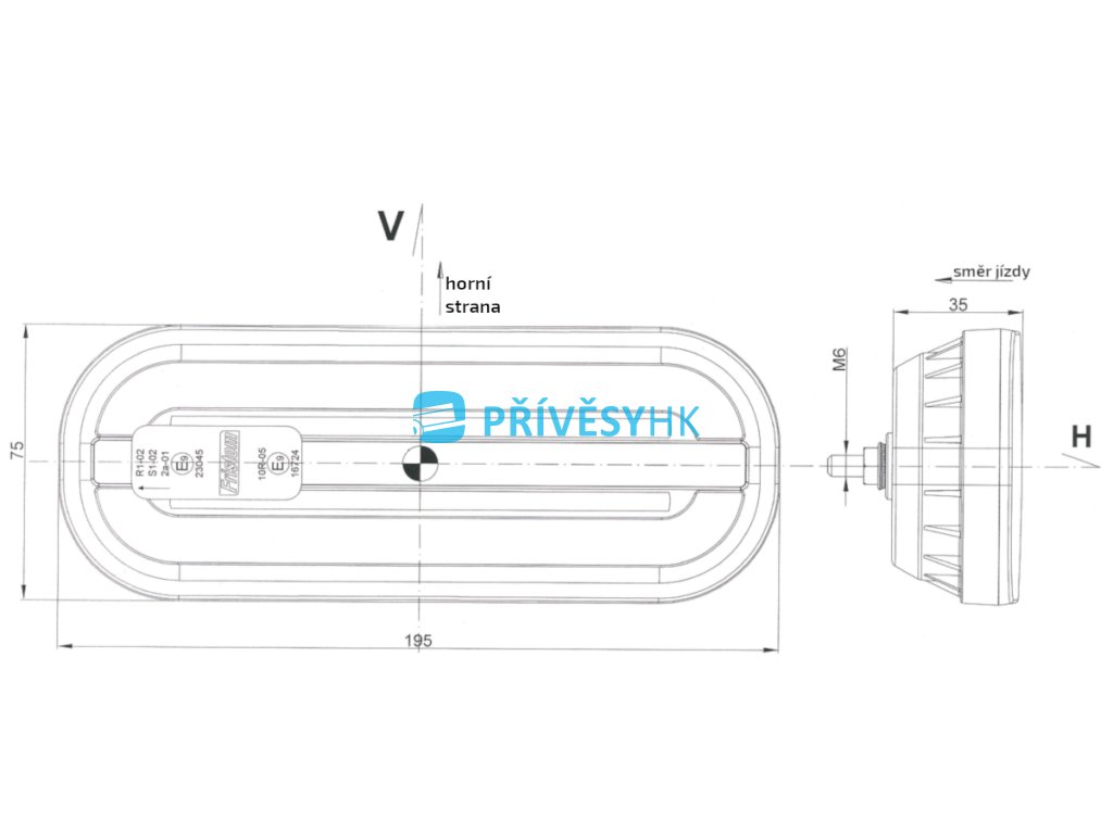 - Svítilna je symetrická, ke změně z pravostranného provedení na levostranné stačí pouze pootočit o 180 stupňů.