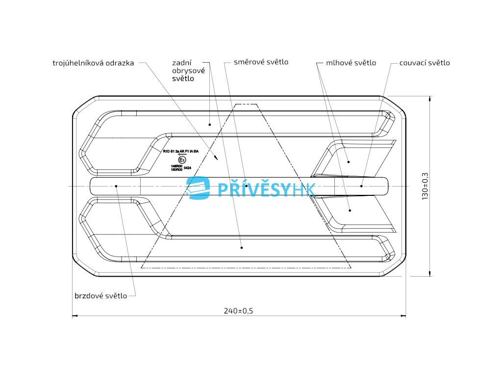 - Integrovaný odrazový trojúhelník, zadní obrysová svítilna (s neon efektem), brzdová svítilna, blinkr, mlhovka a couvačka.
