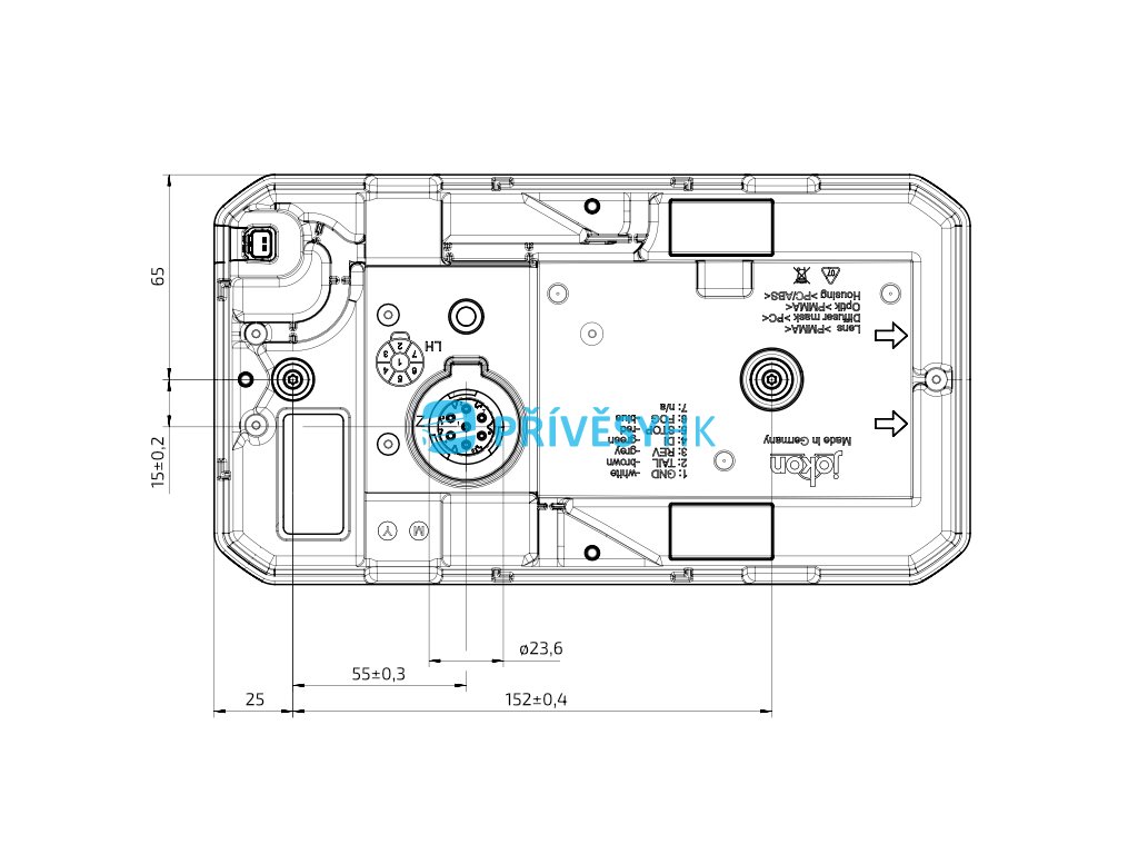 - Svítilna je osazena sedmipólovým bajonetovým konektorem AMP standardu DIN 72585.