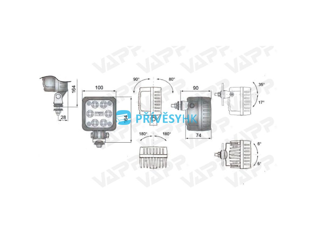 Svítilna pracovní Wesem LED1F, 100x100 mm , LED, 12-24V, 1500 Im, s kabelem 0,5 m