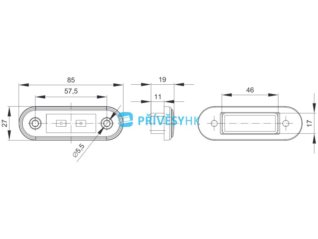 Kompaktní přední LED obrysová svítilna v provedení 12-24 V. Připojení na QS75 konektor.Doplňkové parametry
