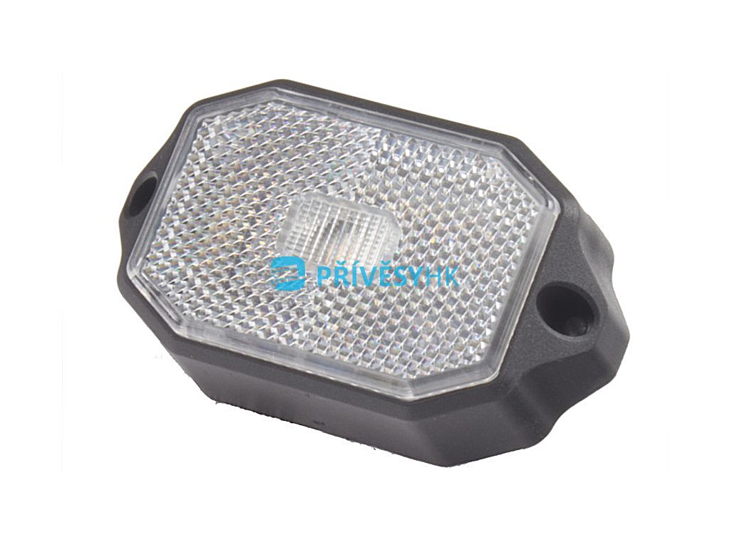 Přední obrysová svítilna v multivoltážním LED provedení (provozní napětí 12-24 V) s integrovanou odrazkou. Díky připojení pomocí dvou přiložených Faston konektorů je v případě potřeby možné vyměnit poškozenou svítinu bez zásahů na kabelážích. Svítilna má osazení pro připojení plochého kabelu QS150 (2x1,5mm2).