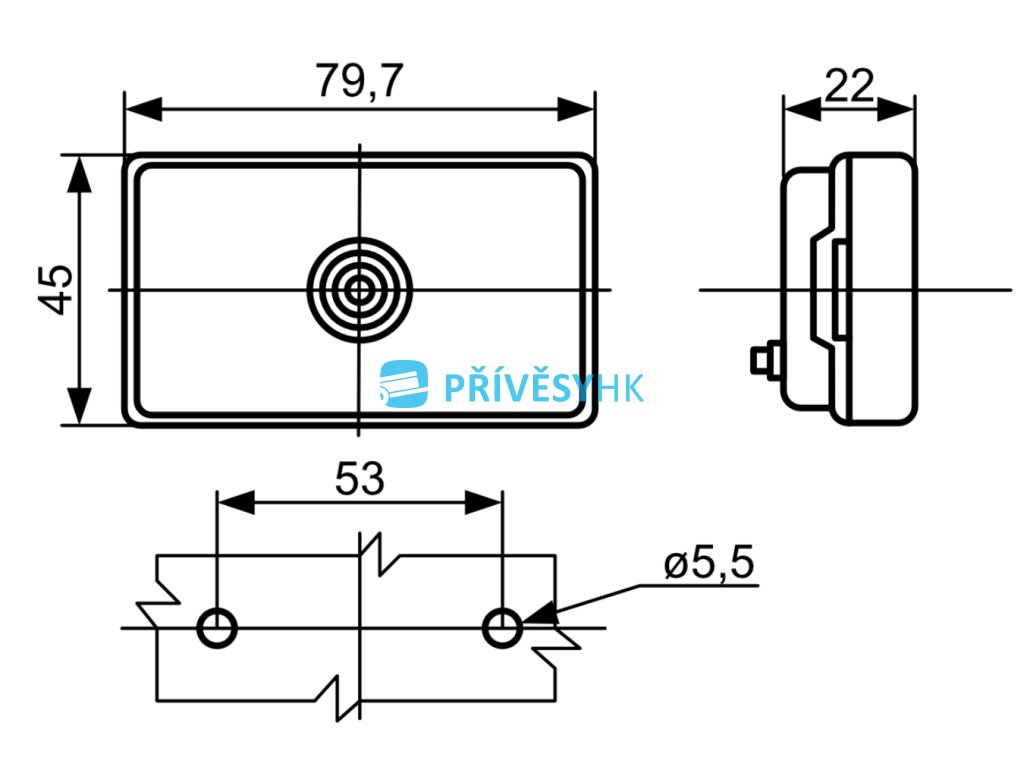 Svítilna přední obrysová LED GMAK G17, 12-24V, s odrazkou, QS150