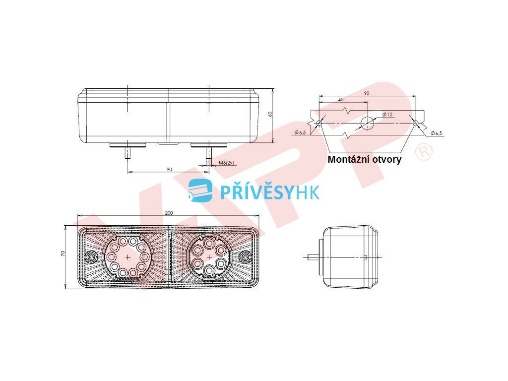 Jednoduchá zadní LED svítilna s obrysovým, brzdovým a směrovým světlem.