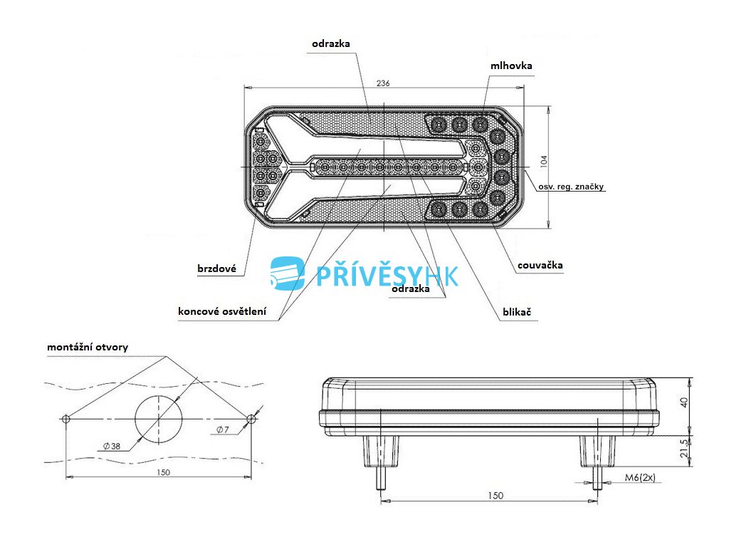 Svítilna WAS W150 sdružená LED 12-24 V, L/P, BL/BR/KO/ML/RZ, dynamický blinkr