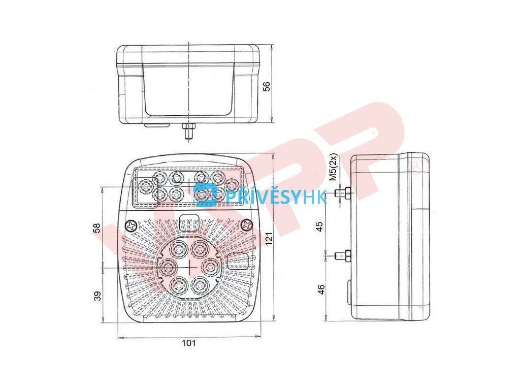 Jednoduchá zadní LED svítilna s obrysovým, brzdovým a směrovým světlem.