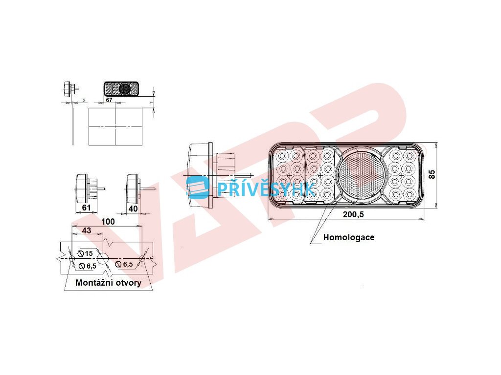 - Při použití na přívěsech je nutné osadit ještě odrazové trojúhelníky.