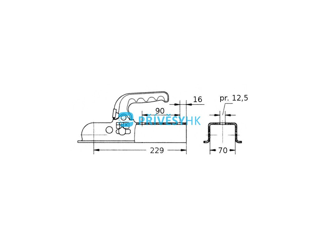 Tažná spojka KNOTT KQ14-C, 1400 kg, 70x70 mm, V12
