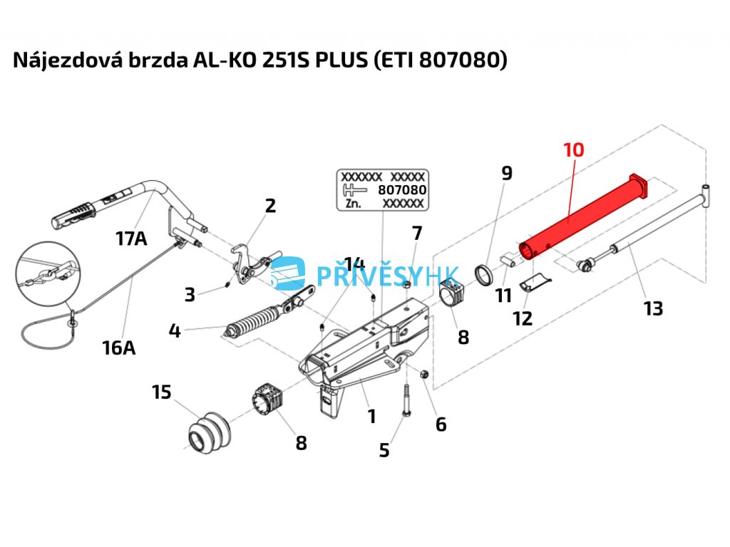 Tažná trubka pr. 50 mm pro nájezdové brzdy AL-KO 251S PLUS (ETI 807080). Pozor, nelze použít na starší typ brzd 251S!Doplňkové parametry