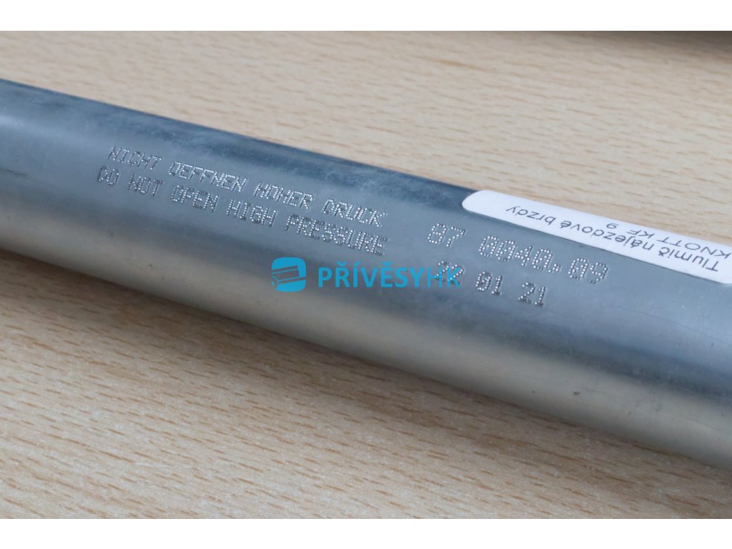 Originální tlumič nájezdové brzdy KNOTT KF 9. Při výměně tlumiče nájezdové brzdy je nutné seřídit celý brzdový systém přívěsu, zejména pak kolové brzdové jednotky. V opačném případě hrozí předčasné opotřebení či poškození tlumiče a dalších komponent brzdového systému. Montáž tlumiče a seřízení brzdového systém doporučujeme svěřit autozitovanému servisu KNOTT.