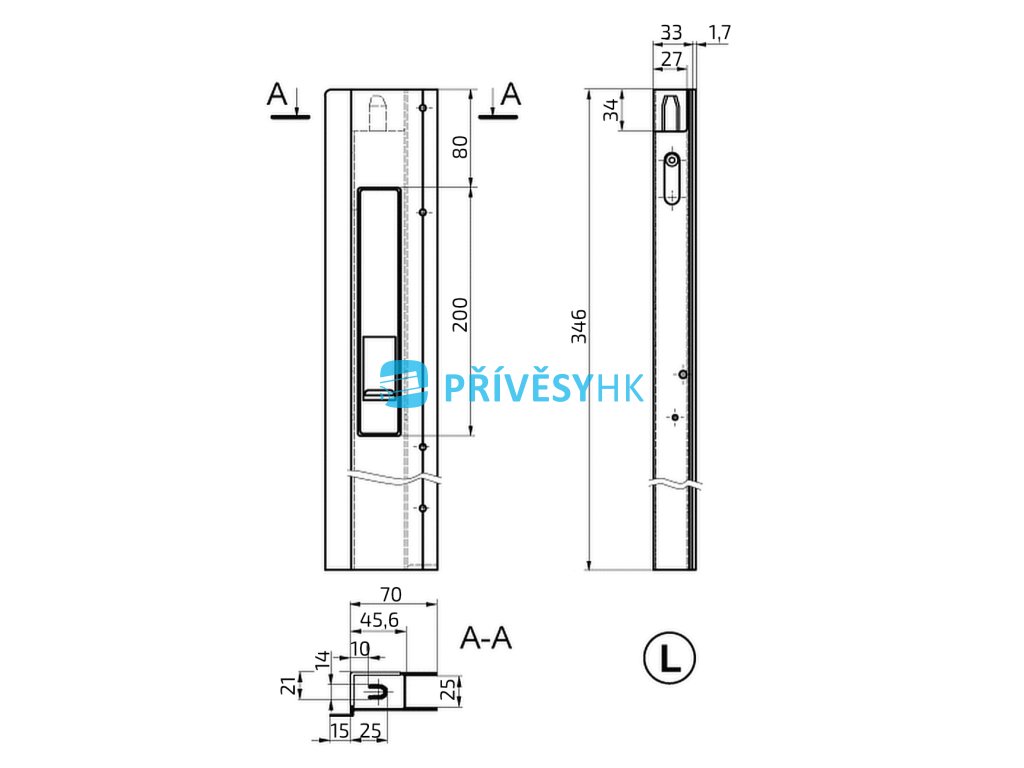 Uzávěr bočnic s lemem SAFEGRIP 350mm levý
